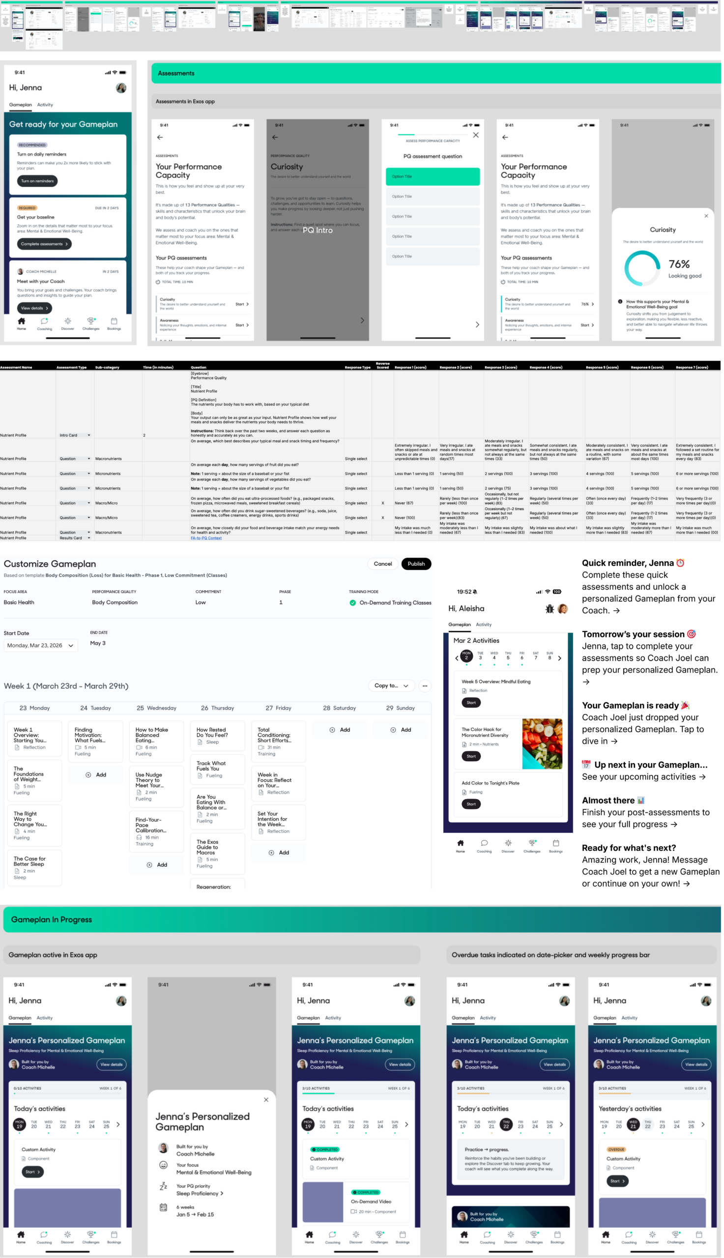 • Owned: End-to-end content strategy and in-product copy, plus key system components (assessments, templates, weekly narrative, notifications)