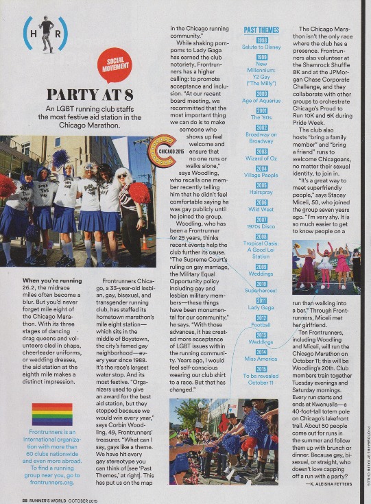 An LGBT running club staffs the most festive aid station in the Chicago Marathon. Read the article at Runner’sWorld.com Chicago marathonfrontrunners chicagoK. Aleisha Fetterslgbt
